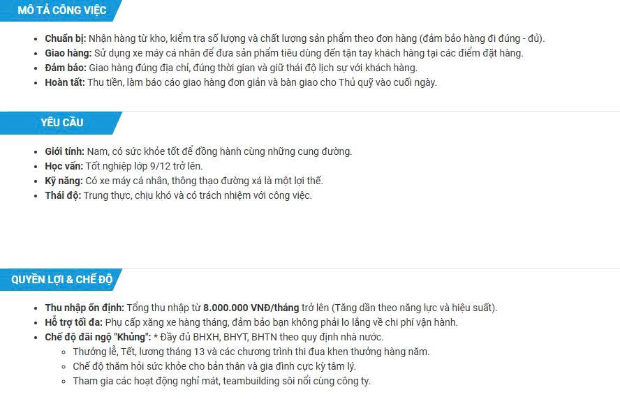 Tuyển dụng nhân viên giao hàng Tháng 02/2026